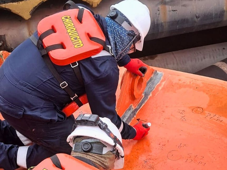 - Inspección de la estructura flotante: casco, columnas, plataforma superior, anillas y elementos de amarre.
